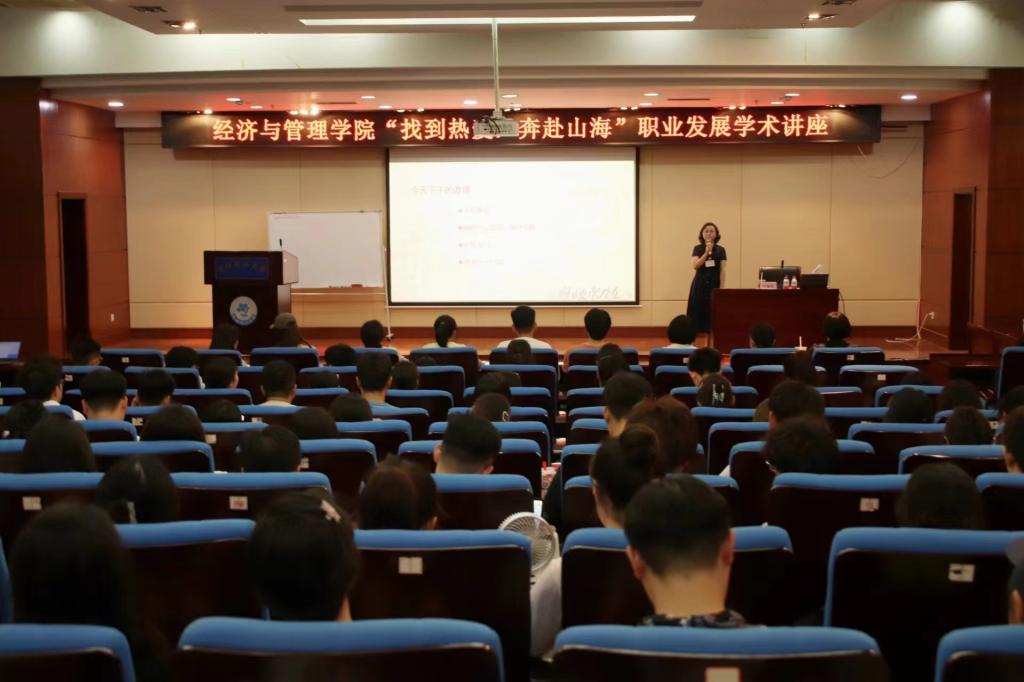 为更好地服务同学们求职就业的需求,解决同学们对于职业生涯的困惑与迷茫。6月19日下午,beat365中文官方网站在图书馆五楼学术报告厅开展了“找到热爱,奔赴山海”职业发展学术讲座。主讲人为松尾中国高级顾问、北京大学国家发展研究院BiMBA商学院面试官许蔓秋老师。此次讲座由金融教研室王文荣教授主持,beat365中文官方网站院长王蓉、副院长刘铁民、学工办辅导员及全体研究生参会。