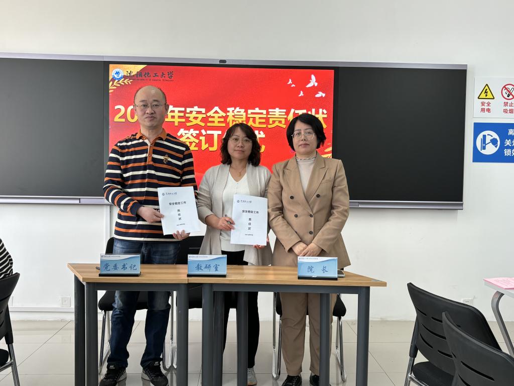 会上党委书记、院长与各教研室、实验中心签订了《beat365中文官方网站安全稳定责任状》,李丙文就全面贯彻落实学校2024年安全稳定会议精神提出要求,强调要牢固树立安全发展理念,强化底线思维、红线意识,夯实学院高质量发展的安全根基。要强化组织领导,学院领导班子同志要按照“一岗双责、党政同责、管业务必须管安全”的要求,落实好安全稳定主体责任。要常态化开展安全隐患排查整治,强化源头防护,细化管理措施,层层落实到人,用高质量的安全稳定工作保障学院各项事业高质量发展。
