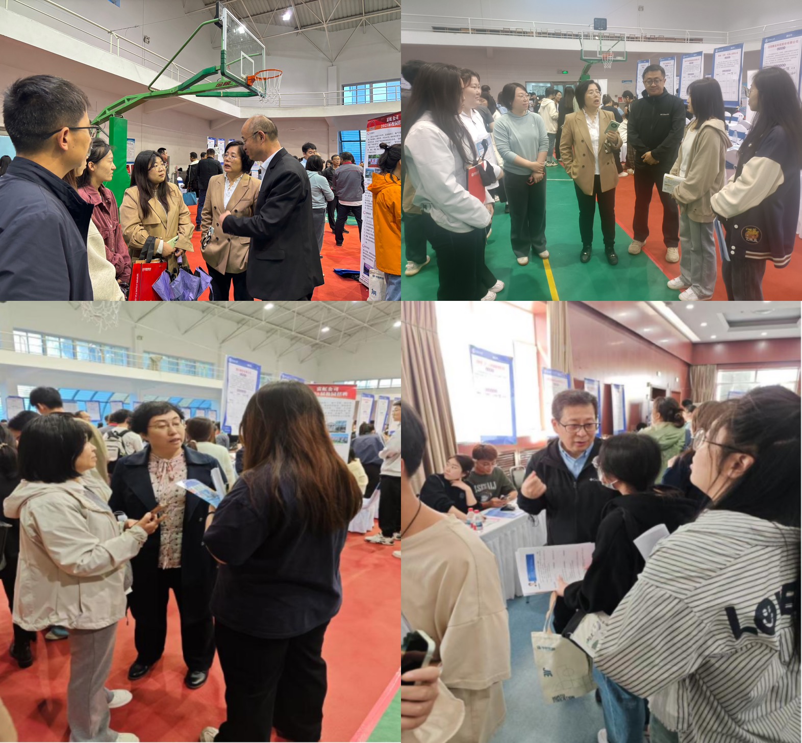 下午,学院领导班子带领全体教师到体育馆参加“双选会”,学院共邀请21家用人单位到学校参加招聘会,老师们与用人企业开展面对面交流,向用人单位推荐毕业生,现场为毕业生进行就业面试指导、对毕业生求职简历提出修改意见。