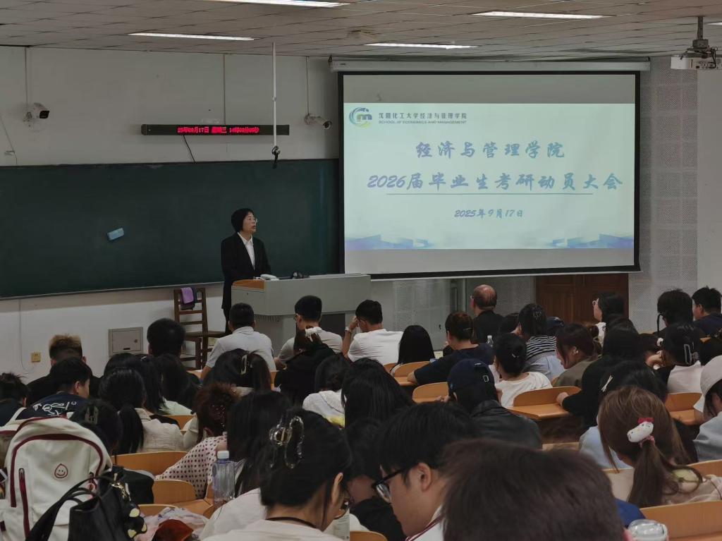 王蓉作总结讲话。一是结合当前经管学科就业形势,科学评估自身水平,建议同学们立足专业优势,既要把握头部企业招聘机遇,也要积极探索基层就业、新兴行业等多元化就业路径。二是鼓励学生报考研究生提升学历水平,深入了解所报学校和专业的优势和特色,制定系统复习计划,充分利用考前三个月关键期成功上岸。三是珍惜毕业前最后一年在校学习时光,多读文献、多参与课题研究,高质量完成学位论文,全面提升专业能力与职业素养,为顺利完成学业走入社会筑牢坚实基础。