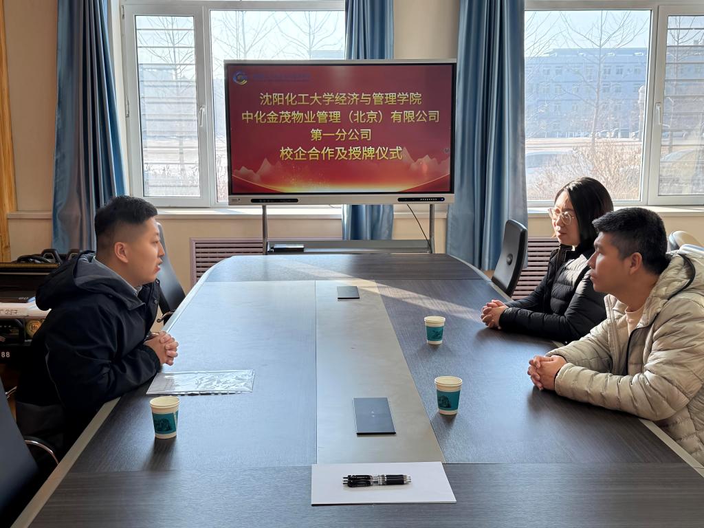 2025年11月28日,beat365中文官方网站与中化金茂物业管理(北京)有限公司第一分公司校企合作签约暨授牌仪式在通明楼101A会议室顺利举行。学院党委副书记关婷、2022级本科毕业生辅导员齐伟,企业代表李方立出席仪式,签订校企合作协议,开启协同育人新篇章。