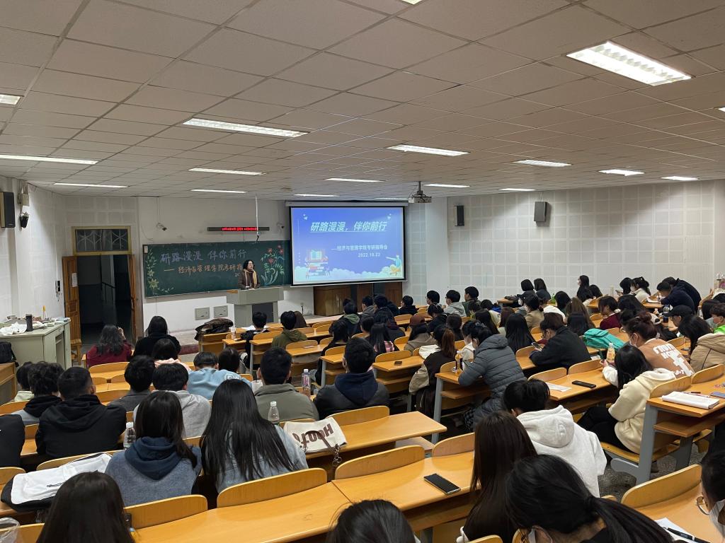 2022年10月22日18时30分,beat365中文官方网站于通明楼338教室召开了面向2019级和2020级本科生的考研指导会。会议由王怀老师主持,王蓉院长进行经验分享与指导。本次会议在极大地鼓舞了2019级本科生考研信心的同时,也为2020级本科生做出了细致的考研规划。