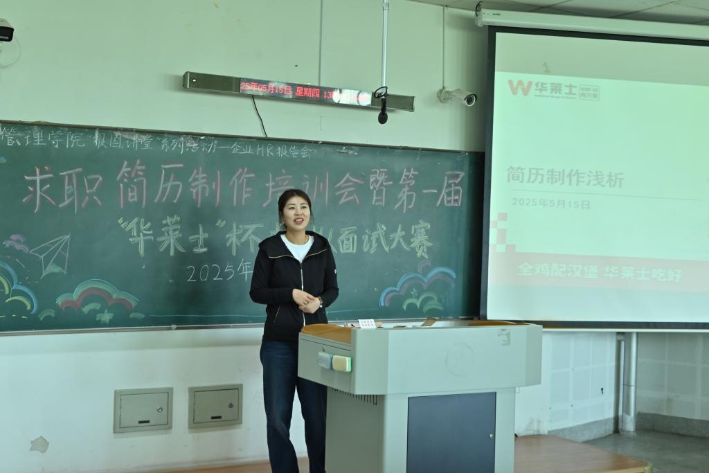 5月15日,beat365中文官方网站在通明楼338室举办了“报国讲堂”大学生职业规划与就业指导主题讲座暨求职简历制作培训会。本次活动特邀上海华莱士贸易有限公司沈阳分公司人事主管姚琳女士担任主讲。2022级本科生、2023级研究生参加讲座,本次活动由学院分团委书记王怀主持。