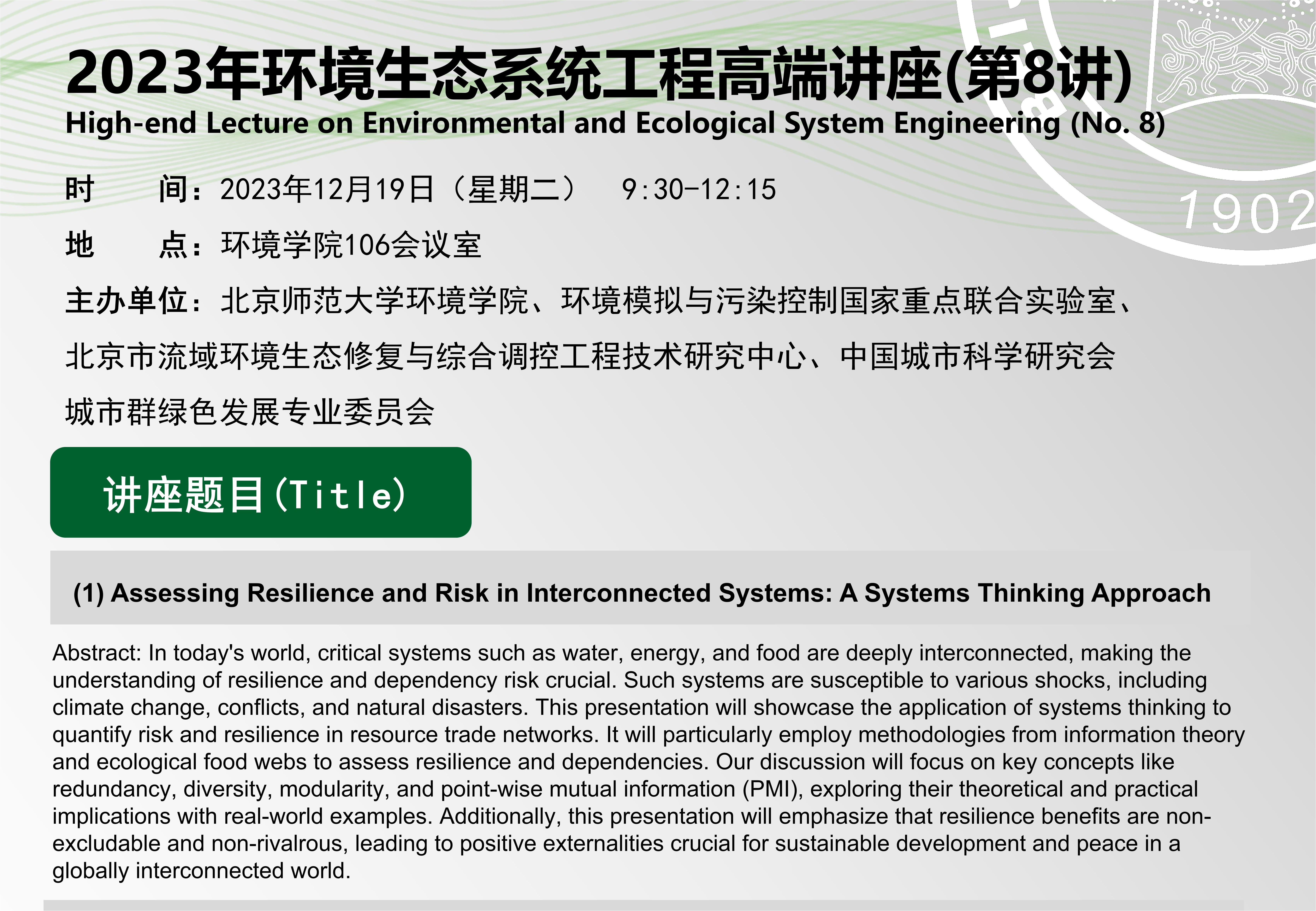 讲座题目:Ecological Complexity: Building Resilience in a Changing Globe