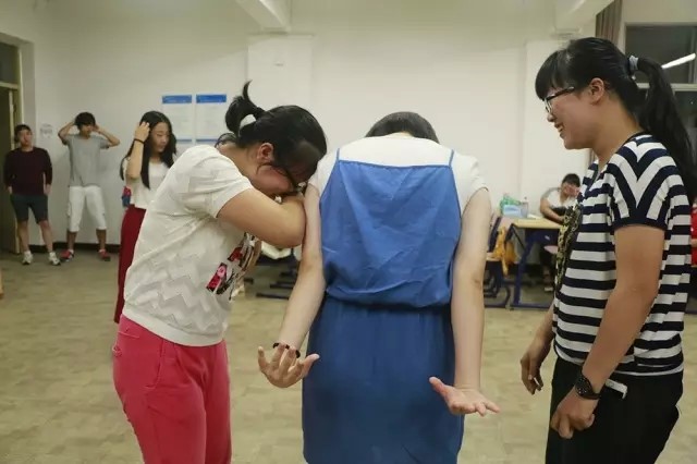第三个游戏是“你猜呀猜呀快猜呀”。一组同学站成一排,工作人员告诉站在第一个的人一个事物(比如:大象),然后第一个人给第二个人比划,只能用肢体语言,一个一个传下去,最后一个人猜出这是什么。有的词语让第一个同学绞尽脑汁,有的肢体语言让后面的同学露出不解的表情。无论是参与在游戏中的人还是旁观的同学都非常开心。