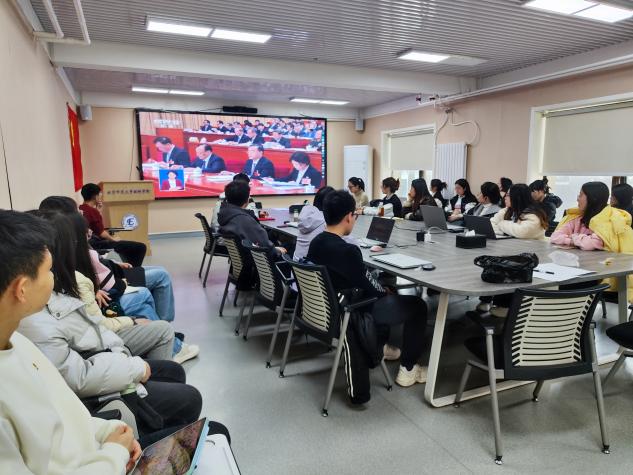 伴随着庄严的国歌声激昂奏响,同学们整齐肃立,齐声高唱,表达对祖国的深切热爱与崇高敬意。在直播进程中,同学们聚精会神地聆听政府工作报告,全面回顾过往一年的工作,领略对未来发展的科学擘画,并对两会传达的会议精神展开积极而热烈的讨论。现场学习氛围浓厚,大家共同探讨人生发展与时代蓝图的交汇点,明晰身为新时代青年肩负的使命与责任。