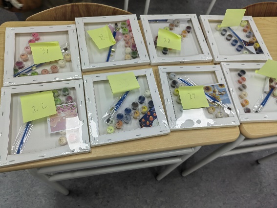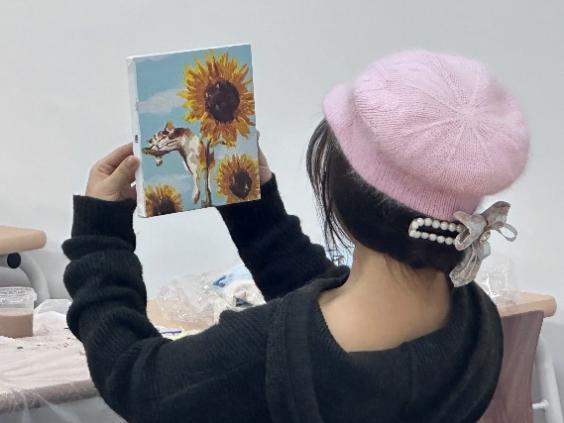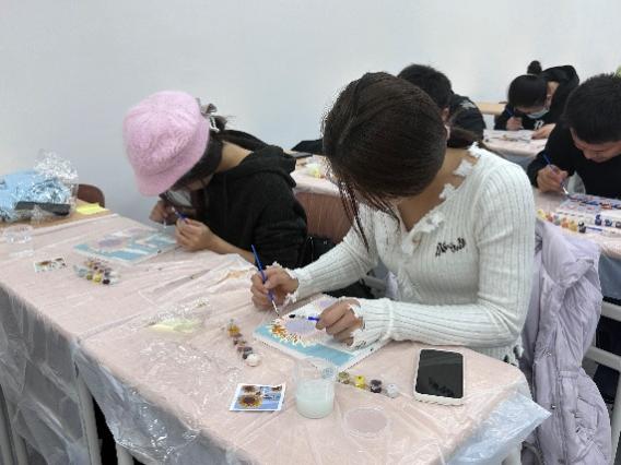 绘画期间,同学们积极投入,相互分享绘画经验,有的同学不拘于模板的限制,在创作中融入了自己的巧思,用丰富多彩的油画作品展现了自己独特的艺术才华。同时工作人员在绘画过程中也及时给予大家指导和帮助,解答同学们在创作中遇到的问题。